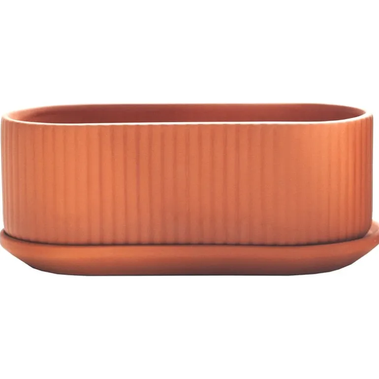 Elementas blomkruka Klorofyll Jardinaire är ett elegant val för olika sorters växter. Den ovala blomkrukan är gjord av terrakotta och har ett fat.
