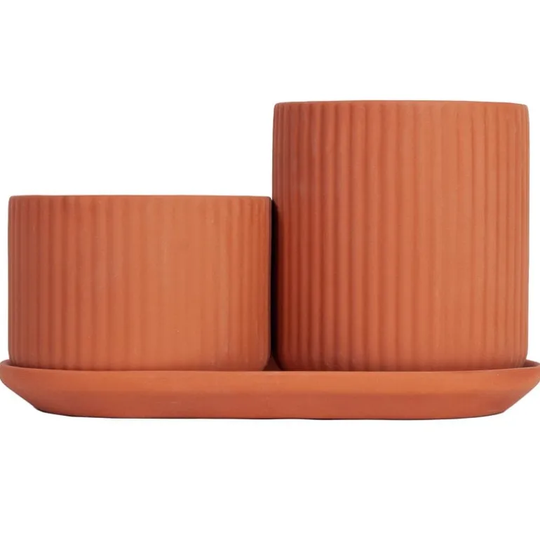 Elementas blomkruksset Klorofyll är ett elegant val för olika sorters växter. Krukorna är gjorda av terrakotta och har ett fat där båda krukorna får plats.