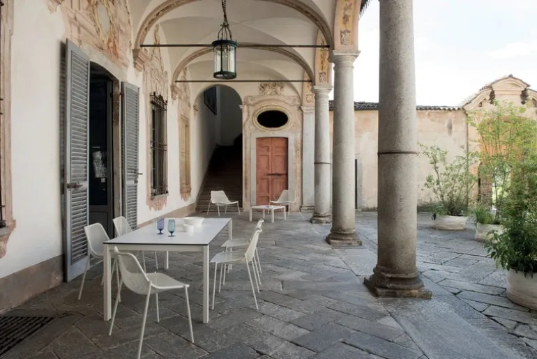 Emus stol Round har en distinkt look som skapas av den lätta, vävda stålramen och dess starka kontur, som ger den luftiga strukturen en gedigen form. Christophe Pillet är formgivaren bakom den inbjudande stolen Round, som med sina mjuka, eleganta former bjuder in till avkoppling både inne och ute i det moderna hemmet.