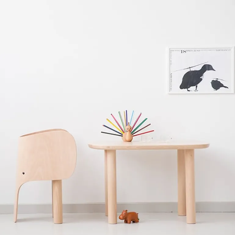 Elephant Table är designad av den franske designern Marc Venot för det danska designföretaget EO, och fascinerar med sin rundade design och den vackra ytan av europeisk bok. Det låga och robusta bordet är utformat för barnrum och passar perfekt ihop med söta Elephant Chair, som också är designad av Venot. Elephant Table kan också användas som soffbord eller blombord tack vare sin minimalistiska och eleganta design.