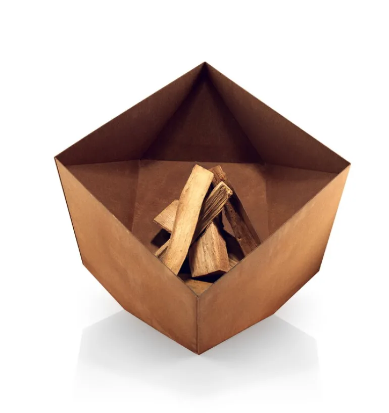 Eva Solos utomhuskamin FireCube har en vacker, diskret design med kreativa funktioner: den lutande eldstaden skyddas från vindbyar, men kan också höjas till en vertikal position, till exempel för att förbereda läckra grillade delikatesser. FireCube utomhuskamin är tillverkad av väderbeständigt stål – eller Corten-stål – som över tid kommer att få en charmig patina, vilket understryker dess karaktäristiska utseende.
