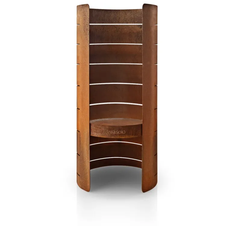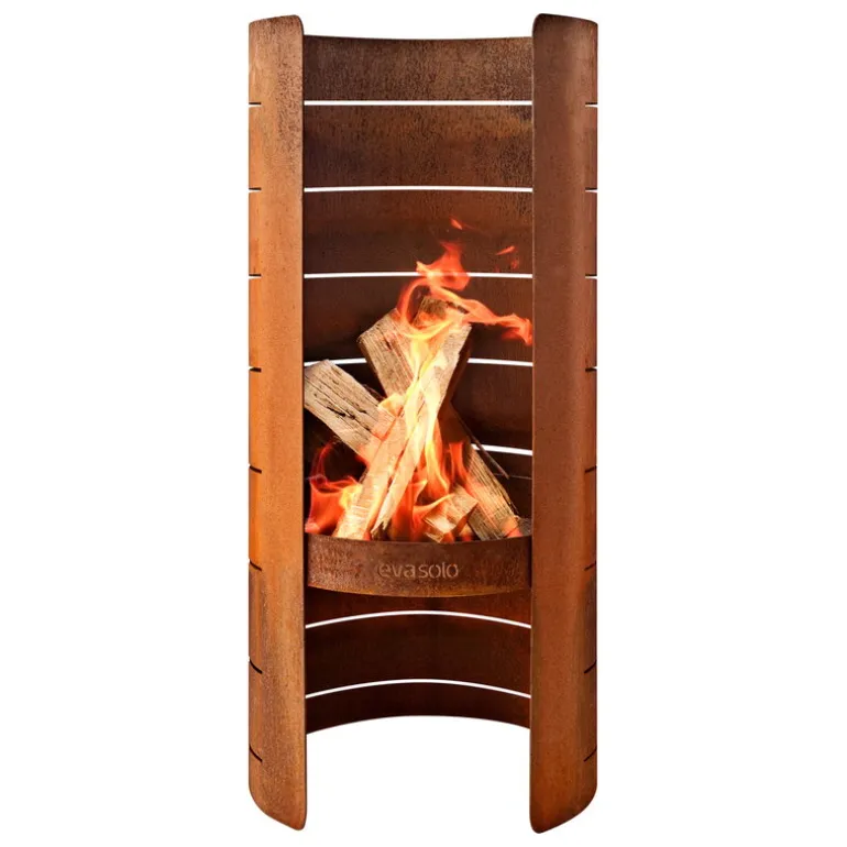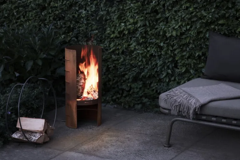 Eva Solos FireCylinder utomhuskamin har en vacker, minimalistisk design med kreativa funktioner: den höga eldstaden skyddas från vindbyar, men de glödande lågorna kan fortfarande beundras från alla vinklar. FireCylinder trädgårdskaminen är tillverkad av väderbeständigt stål – eller Corten-stål – som över tid kommer att få en charmig patina, vilket understryker dess karaktäristiska utseende.