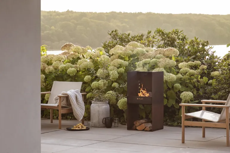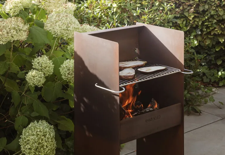 Eva Solos praktiska och stilrena grill FireSpot hjälper dig att ordna perfekta grillkvällar på sommaren. Utegrillen är tillverkad av väderbeständigt Cortenstål och har ett elegant och enkelt formspråk som bara blir vackrare med tiden. Skiftande väderförhållanden och de kraftiga temperaturväxlingarna ger ytan på grillen en unik patina. Till FireSpot medföljer ett grillgaller i rostfritt stål med två handtag som underlättar hanteringen. Den höga väggen baktill fungerar som vindskydd, så du kan grilla även om vädret skulle vara en aning ostadigt!