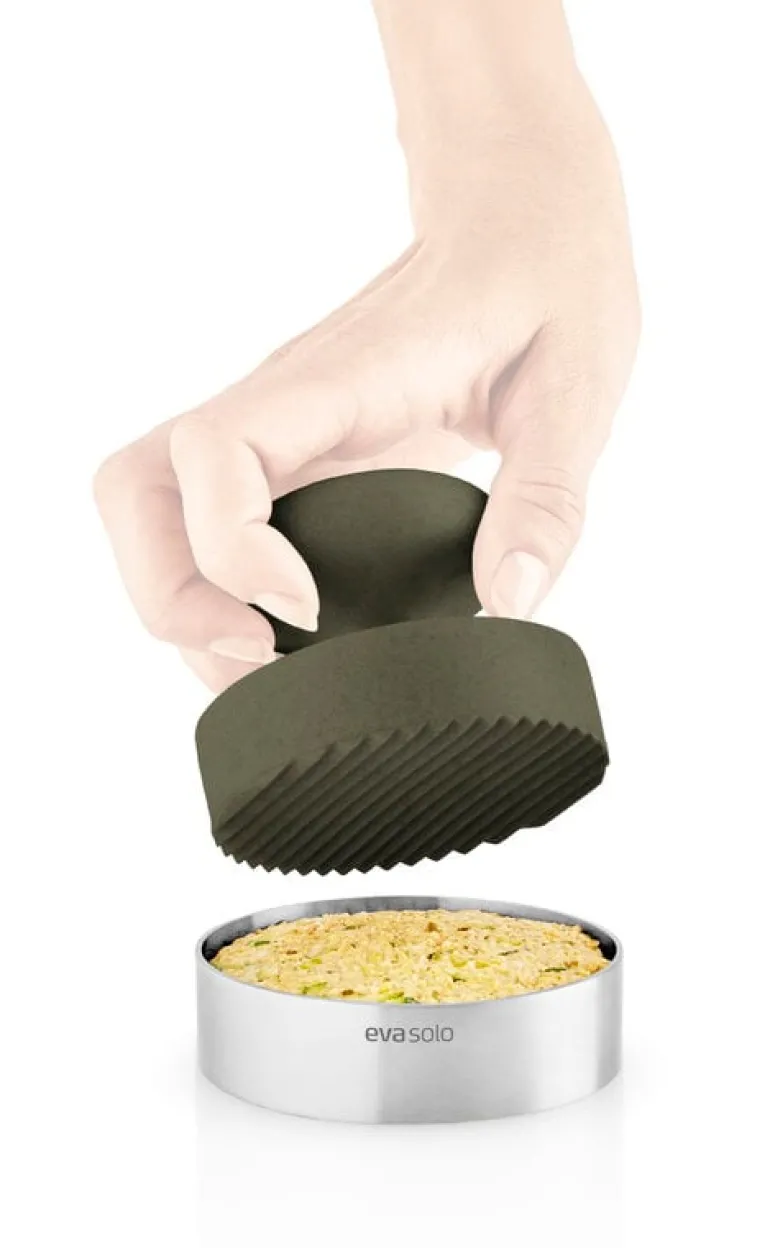 Green Tool hamburgerpress från Eva Solo gör det så enkelt som det bara går att forma jämna hamburgare, oavsett om det är handlar om vegoburgare eller en klassisk ostburgare. Eller varför inte testa att göra hash browns eller rösti! Hamburgerpressen kan diskas i diskmaskin och är väldigt enkel att använda: burgaren placeras i mitten av metallformen och pressas platt med handtaget. Slutresultatet är alltid en perfekt rund burgare.