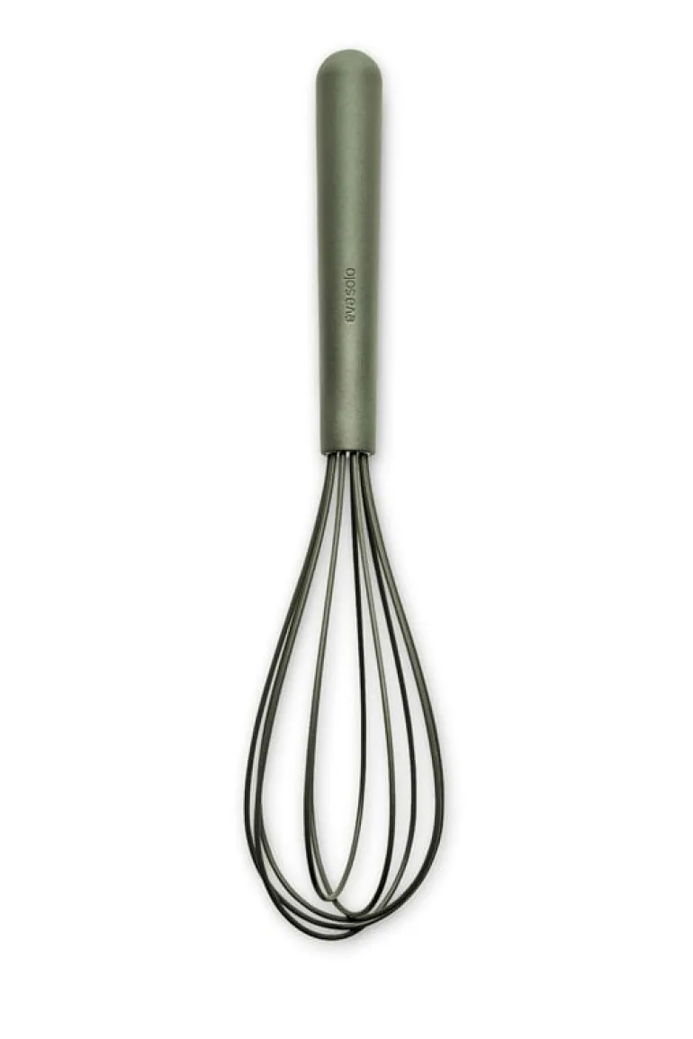 Eva Solos visp Green Tool är belagd med ett silikonskikt så att den kan användas till alla slags grytor, kastruller och pannor, även sådana med beläggning. Vispen är värmetålig i upp till 250 °C och kan diskas i maskin.