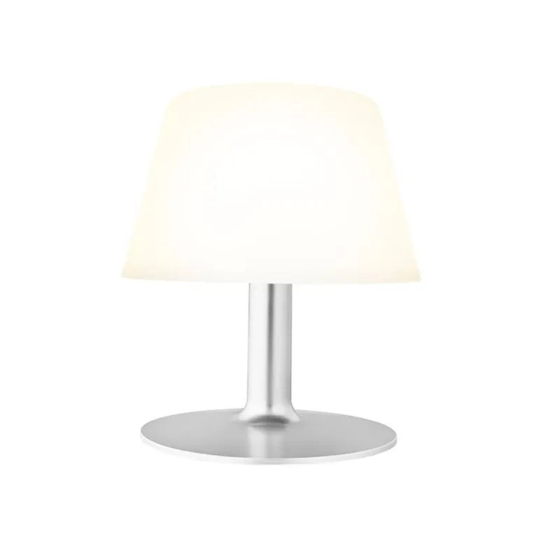 Eva Solos SunLight Lounge bordslampa skapar en magisk atmosfär under mörka kvällar. Den moderna utomhuslampan, skapad av Tools Design, är portabel och drivs helt av solpaneler som är dolda inuti skärmen, vilket gör den till ett idealiskt tillskott till trädgården och balkongen samt till sommarstugan eller båten. Efter att ha solat i åtta timmar ger SunLight Lounge utomhusbordslampa ett stämningsfullt ljus i upp till 20 timmar. Om du vill kan du också ladda den med en USB-kabel. Ljusstyrkan på armaturen kan justeras, och du kan också ställa in den så att den tänds automatiskt vid skymning: lampan stängs av efter sex timmar.