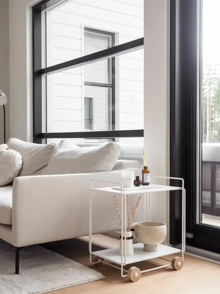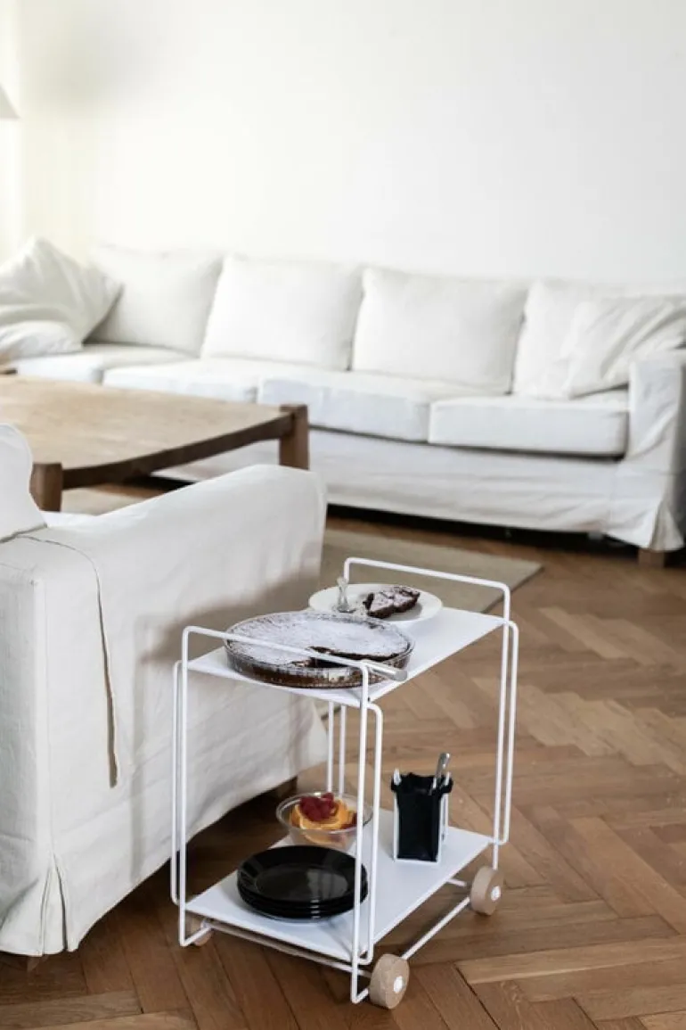 Serveringsvagnen Tampere från Everyday Design är en behändig, praktisk och smart hjälpreda som ordnar extra utrymme även till de minsta rummen. Serveringsvagnen är tillverkad av tålig metall och har hjul av asp, vars naturliga stil blir ett mjukt och värmande inslag i vagnens för övrigt industriella framtoning. Den mångsidiga vagnen Tampere kan användas som serveringsvagn till middagar, som extra sidobord i köket eller som sko- och tillbehörsvagn i hallen – möjligheterna är närmast oändliga! Serveringsvagnen, formgiven av Helena Mattila, tillverkas i Finland och har fått sitt namn efter just Tampere (Tammerfors) – den folkrikaste inlandsstaden i Norden.