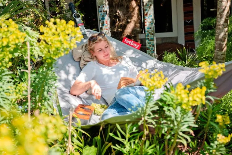 Fatboys Headdemock är den perfekta kompisen att hänga med en härlig sommardag. Den moderna hängmattan behöver inga träd, eftersom det följer med en robust ram – placera den gärna på din favoritplats, oavsett om det är en terrass, en balkong, en trädgård eller en strand. Headdemock är tillverkad av slitstarkt, UV-beständigt, vatten- och smutsavvisande tyg som gör den väl lämpad för utomhusbruk. Dessutom finns hängmattan i ett spektrum av vackra färger, och den är stor nog att rymma både dig och en vän. När vädret inte är tillräckligt bra för att ligga ute på din Headdemock rekommenderar vi att du förvarar din Headdemock inomhus eller skyddar den med Headdemock-överdraget, som kan köpas separat.