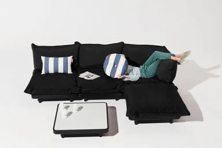 Fatboy King Outdoor kudde, randig, ocean blue – vit