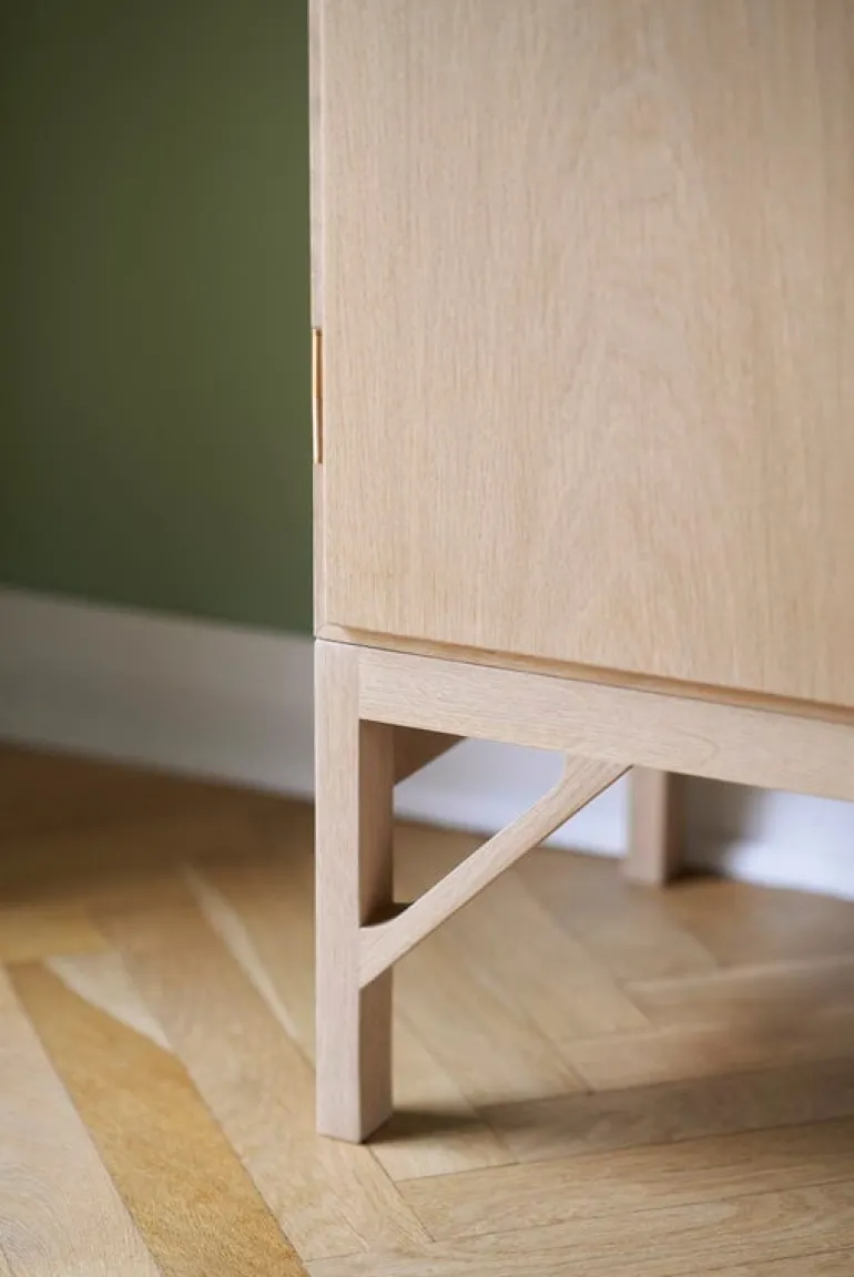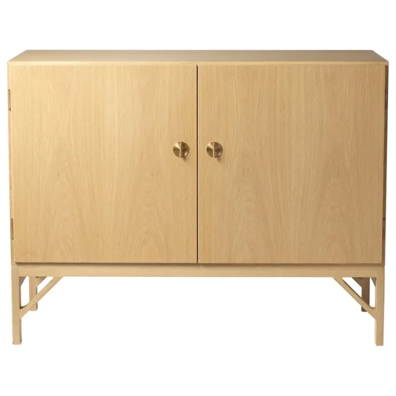 A232 sideboard från FDB Møbler är ett elegant skåp i ek, designat av Børge Mogensen 1964. Sideboardet A232 är ett fint exempel på Mogensens rena och funktionella stil, med en slank träkonstruktion, mässingsfärgade metallknoppar och två fack bakom dörrarna. Du kan använda facken som de är, eller anpassa dem med hyllor och lådor, som säljs separat.