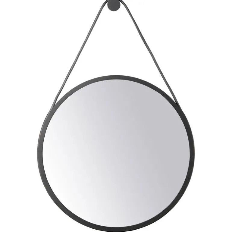 FDB Møblers I3 Mossø-spegel, designad av Diana Mot och Isabella Bergstrøm, är en fräsch tolkning av en klassisk väggspegel med träram. I3 Mossø-väggspegeln har en rund ram av ekträ som hängs upp på väggen med hjälp av en träkrok och ett läderband med detaljer i mässing. Du kan placera spegeln på en vägg i hallen eller klädkammaren, eller använda den som en dekorativ spegel i vardagsrummet för att skapa intrycket av extra ljus och rymd.