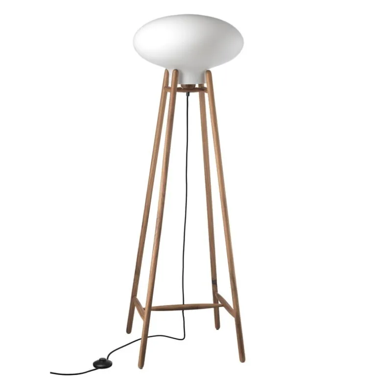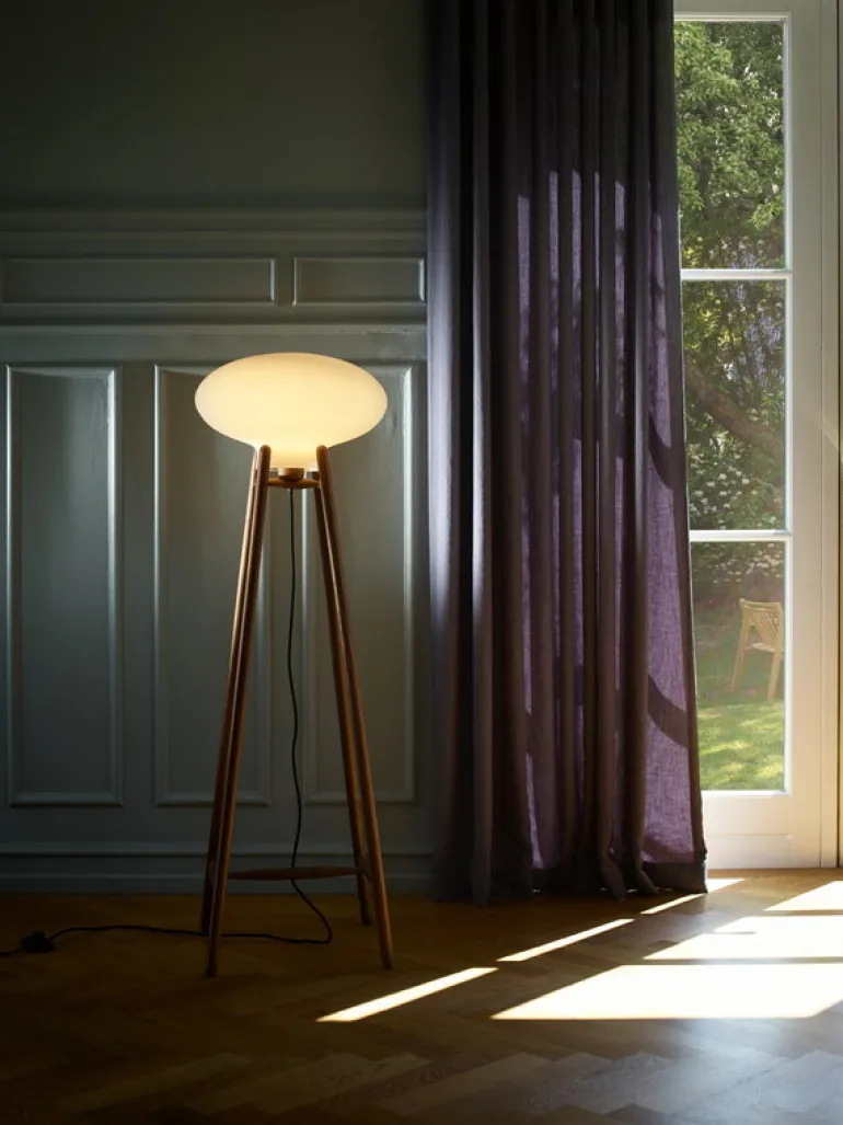 Golvlampan Hiti, från FDB Møbler, har en minimalistisk design grundad i dansk designtradition, men med nyanser från moderna tider och fjärran kulturer. Armaturen, som är designad av Philip Bro och Dögg Guðmundsdóttir, består av en lampskärm i opalglas som bärs upp av en trästruktur, vilken påminner om klassisk dansk möbeldesign.