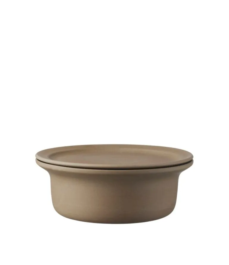 Skålen är del av 1970-talets populära stengodskollektion som återintroducerats av det danska företaget FDB Møbler. Serien Ildpot är baserad på ett väldigt unikt keramikmaterial som kan fördela värme perfekt och som tål stora temperaturskillnader. Formgivaren Grethe Meyer ville skapa en väldigt mångsidig stengodskollektion som lämpar sig lika väl för matlagning som för servering och förvaring av mat. Ildpot skålar, fat och tallrikar kan flyttas direkt från frys till ugn, från ugn till matbord och från matbord till diskmaskin.