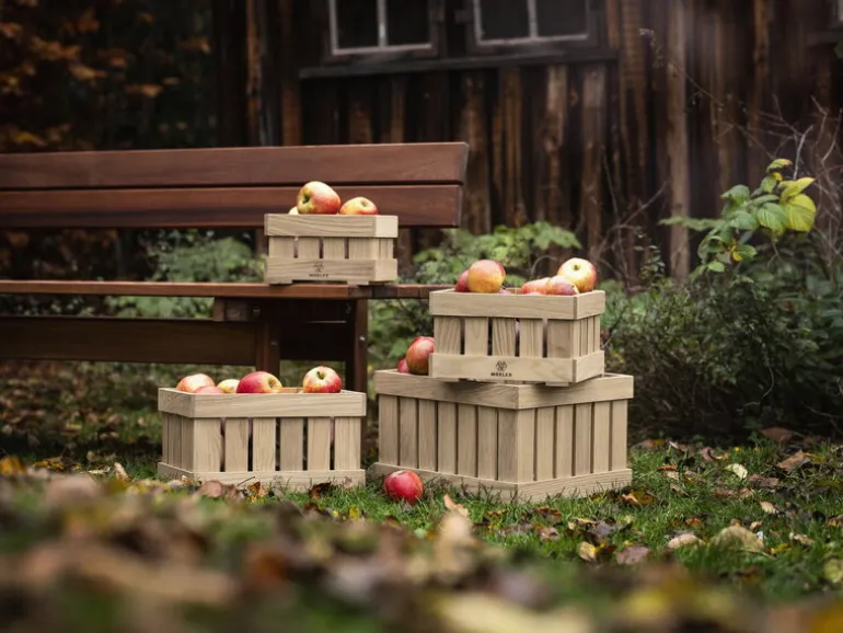 Den charmiga trälådan från FDB Møbler är Monica Ritterbands moderna tolkning av de äppellådor som traditionellt använts vid skörd. Utöver äpplen och andra godsaker från trädgården, kan trälådan användas för diverse förvaringsbehov i hemmet.