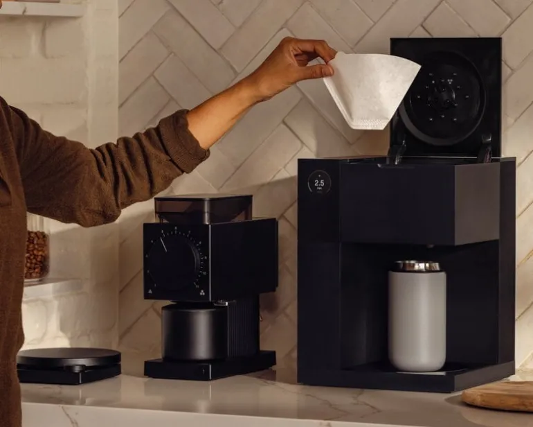 Om en spådam någon gång har sagt till dig att du kommer att träffa en lång, mörk och snygg främling, så kanske hon syftade på den här! Fellow Aiden Precision är en elegant, mörk kaffebryggare som brygger din favoritdryck på nolltid. Oavsett om du föredrar ljus, mellanrost, mörkrost eller till och med kallbryggt kaffe, så har den här maskinen allt du behöver. Den unika temperaturkontrollen brygger kaffe med precision ner till en grad och kan till och med justera vattentemperaturen mitt under bryggningen.