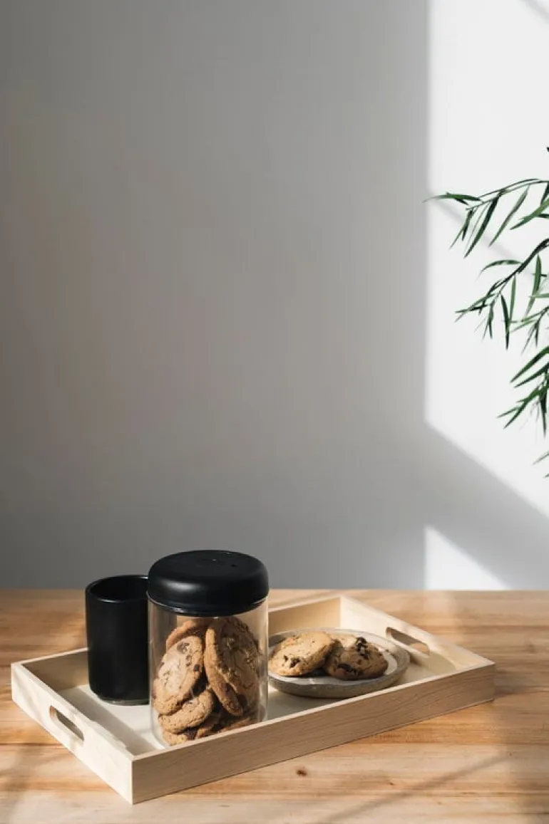 Glasburken Atmos från Fellow håller dina kaffebönor fräscha och aromatiska – eller varför inte också müsli, nötter eller kakor för att nämna några exempel? Den minimalistiska kaffeburken är utrustad med ett svart, lufttätt lock med inbyggd vakuumpump som suger ut luften från burken, vilket ökar hållbarhetstiden för dina kaffebönor med upp till 50 procent. Burken öppnas med en praktisk utlösningsknapp som återställer lufttrycket till det normala.