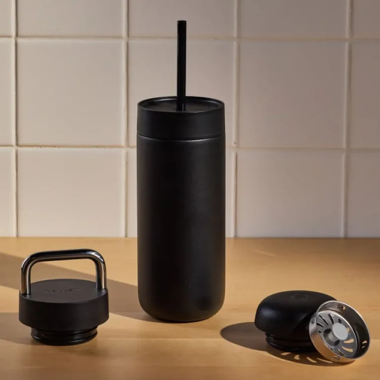 Fellows Carter 3-in-1 Lid System är den perfekta uppsättningen för att ta med sig varma eller kalla drycker, oavsett om det är varmt kaffe eller uppfriskande iste. Setet innehåller en resekopp av hög kvalitet från Carter Move med dubbelväggskonstruktion som effektivt isolerar värme. Dess keramiska True Taste-beläggning ser till att din dryck behåller sin rena smak utan metalliska eller andra oönskade inslag, något som är vanligt i många termosar. Förutom thermokoppen Carter Move ingår tre olika lock för olika användningsområden: