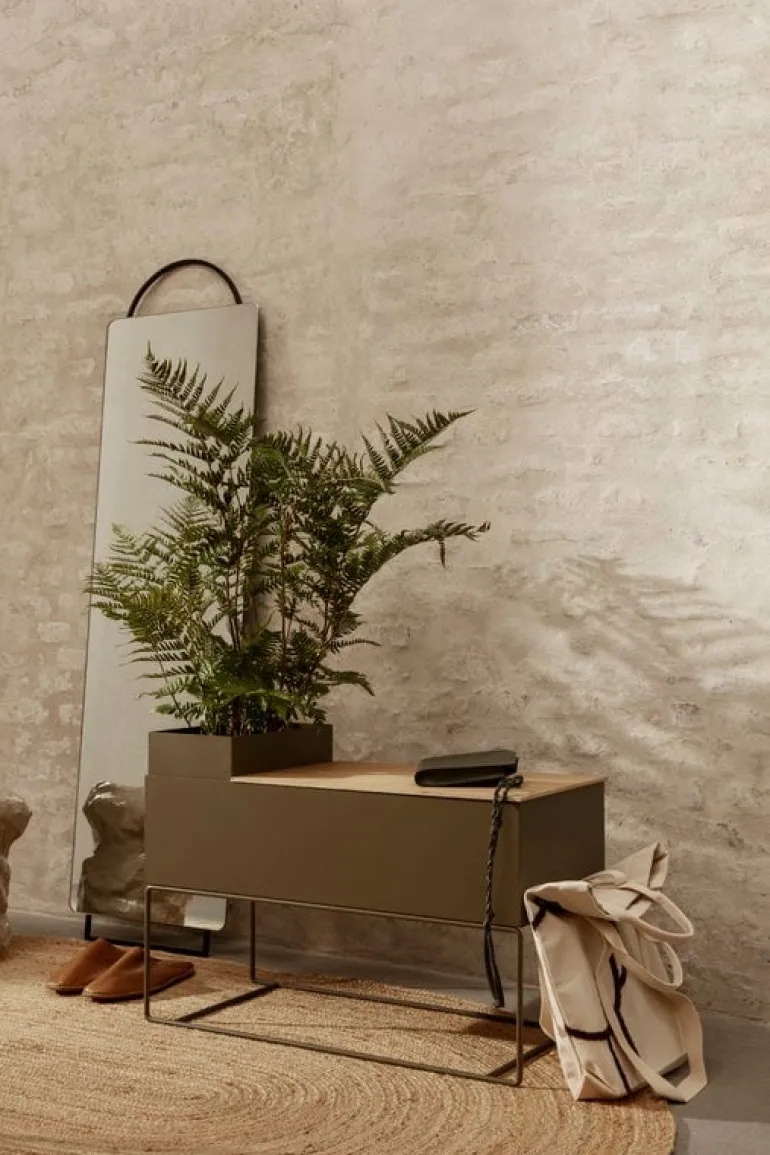 Adorn-spegeln från ferm LIVING är en enkelt elegant reflektor för väggen i hallen, badrummet eller sovrummet. Stålornamenten på toppen och botten fulländar utseendet på den minimalistiska spegeln, ger den en touch av elegans och utsmyckning – och också dess namn, Adorn. Den ramlösa spegeln kan monteras direkt på väggen eller placeras för att luta mot den.