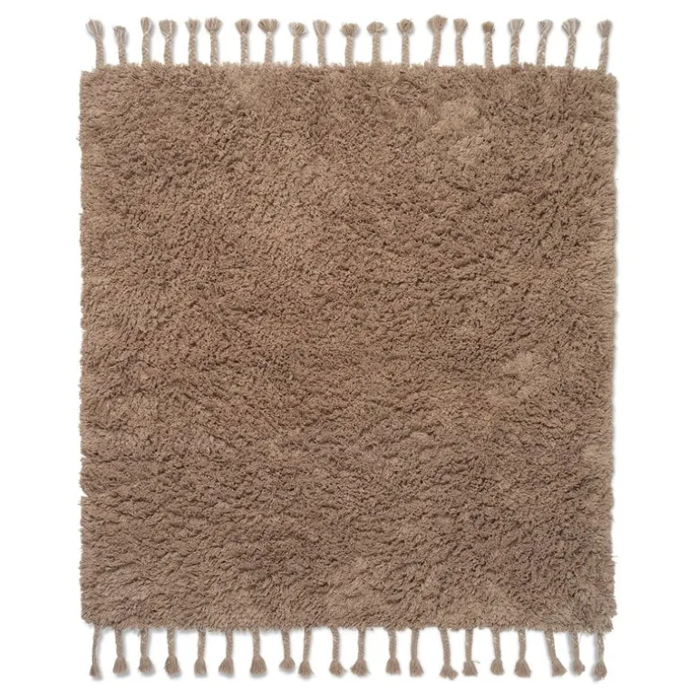 Ferm Livings matta Amass är gjord av mjuk bomull. Den varma och lyxiga mattan känns bekväm under fötterna och det handvävda garnet skapar en charmigt fluffig textur. Mattans tjocka och flätade fransar framhäver mattans handtillverkade intryck. Den sandfärgade mattan skapar en mysig atmosfär och är ett toppenval i badrummet, barnrummet eller ett litet vardagsrum. Mattan Amass kan maskintvättas vid behov.