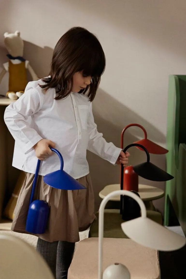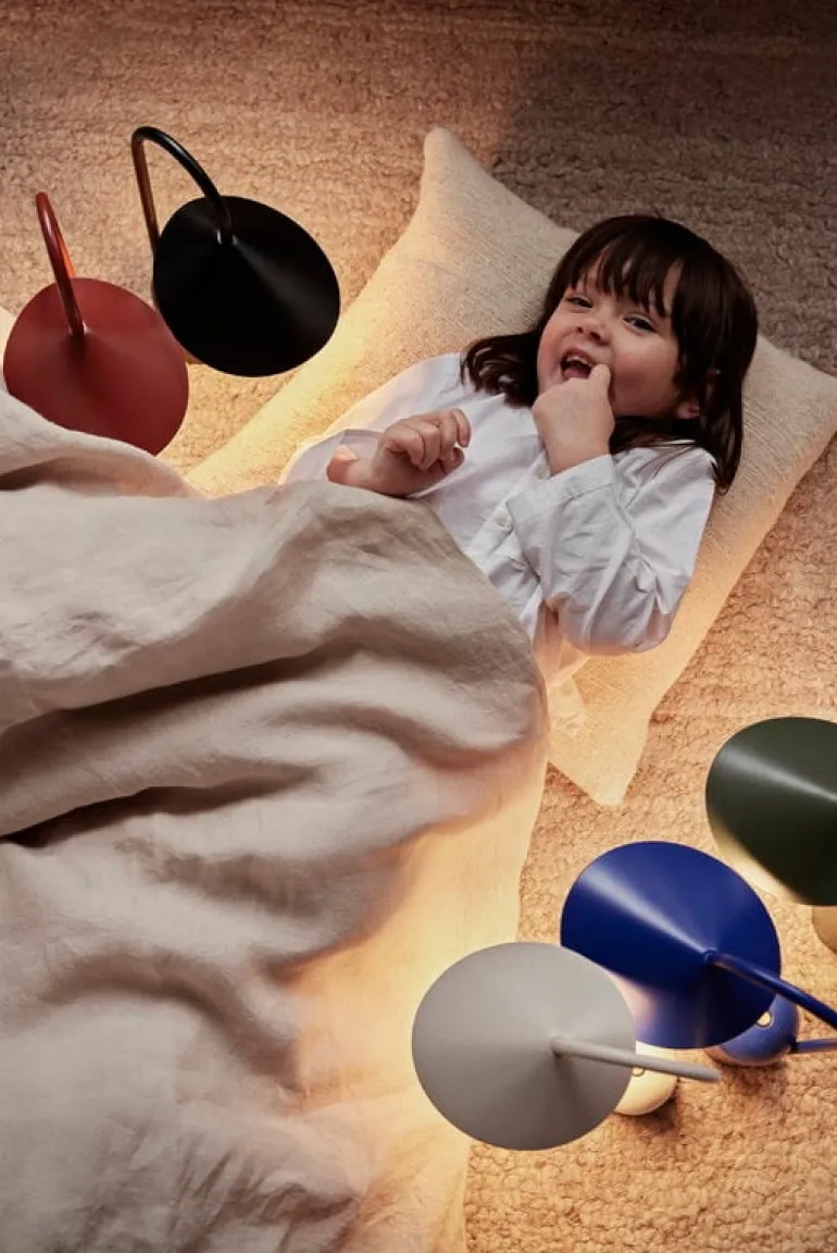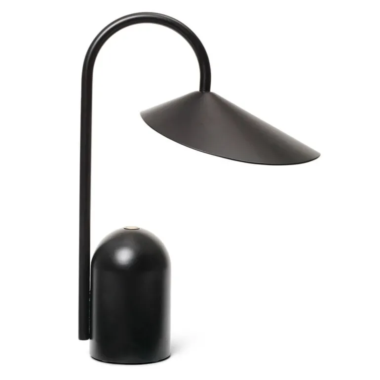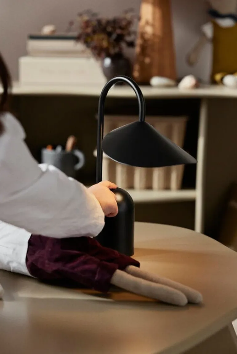 ferm LIVING:s bärbara bordslampa Arum är enkel att flytta från fönsterbrädan till soffbordet eller från skrivbordet till matbordet, där ljuset behövs. Denna trådlösa lampa, som laddas med USB-C-kabel, har en dimmer med tre nivåer och batteriet räcker i 8–24 timmar på en enda laddning, beroende på ljusstyrka.