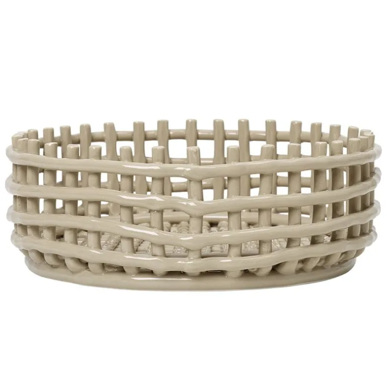 Skålen Ceramic, från Ferm Living, kombinerar krukmakeri och traditionell korgvävning till en rolig och modern behållare. Den mångsidiga skålen Ceramic kan användas för förvaring eller servering av frukt och bröd. Den roliga designen fångar blickar och gör sig väl på egen hand.