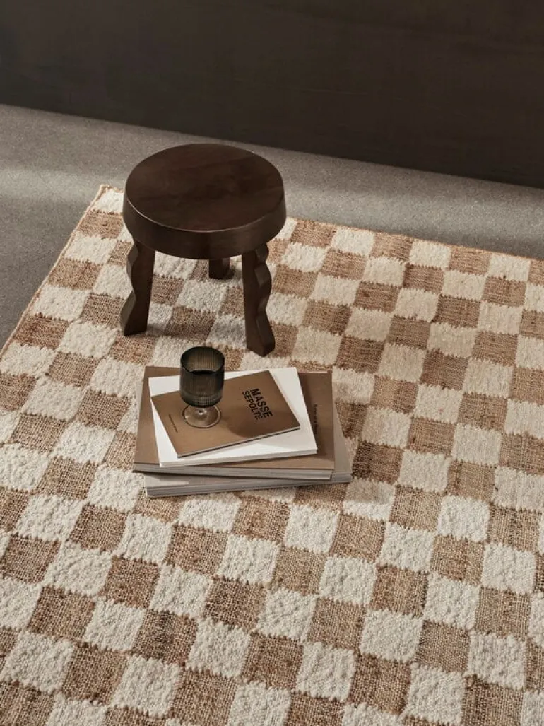 Check Wool Jute-mattan från ferm LIVING kombinerar naturlig jute med mjuk ull i en stilig, rutig design som både är hållbar och bekväm. Den handvävda mattans neutrala toner smälter in i alla utrymmen och ger en varm och ombonad känsla i vardagsrummet eller sovrummet. Naturliga material och en tidlös design gör Check Wool Jute-mattan både miljövänlig och estetiskt tilltalande, perfekt för att skapa en välkomnande och hemtrevlig atmosfär i alla rum.