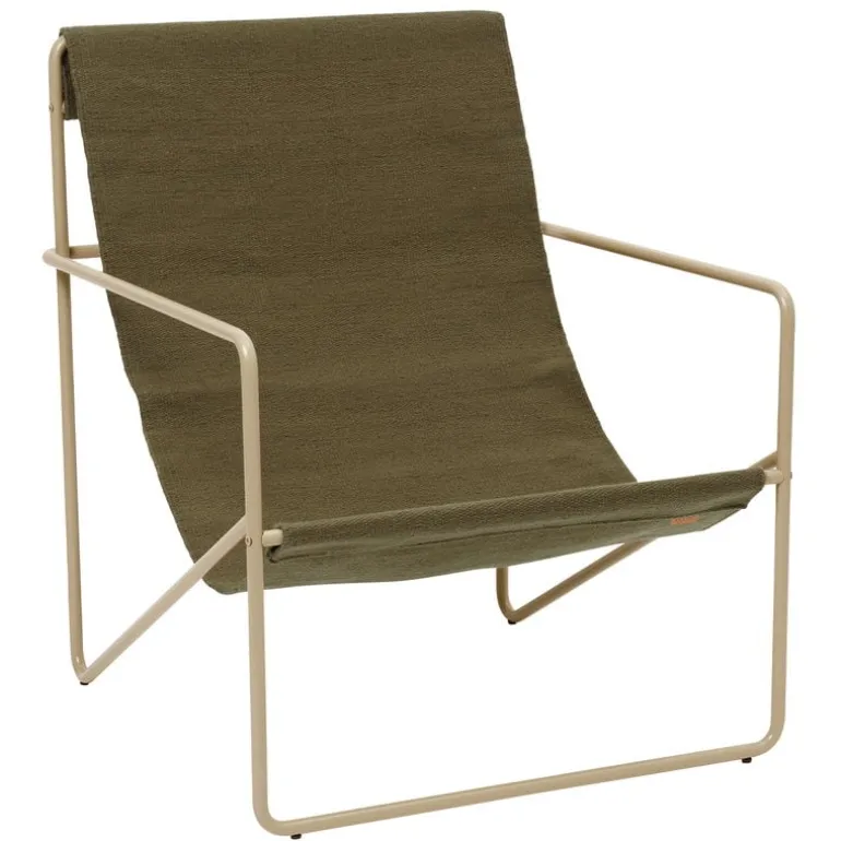 Den här fåtöljen är Ferm Livings moderna svar på den sanna trädgårdsklassikern, däckstolen. Den uppdaterade versionen av Desert har en ännu mer ergonomisk metallram med en stilig, matt beläggning.