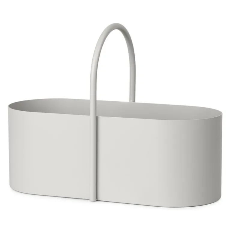 Ferm Livings Grib Toolbox är en elegant verktygslåda som charmar betraktaren med sin mjukt, angenäma form. Lådan är tillverkad av pulverlackerad metall och ger mängder av möjligheter för förvaring av småsaker, och är perfekt för verktyg, trädgårdsmaterial, städprylar och badrumsprodukter. Det praktiska handtaget och hålen i botten gör det enkelt att flytta och använda lådan både inomhus och utomhus.