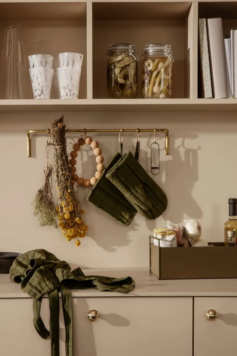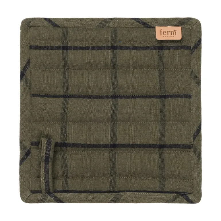 Grytlapparna Hale, från Ferm Living, har traditionella mönster och moderna färger – välj din favorit bland de många intressanta kombinationerna. Grytlapparna är tillverkade av 50% linne och 50% bomull, och fyllda av återvunnen polyester.