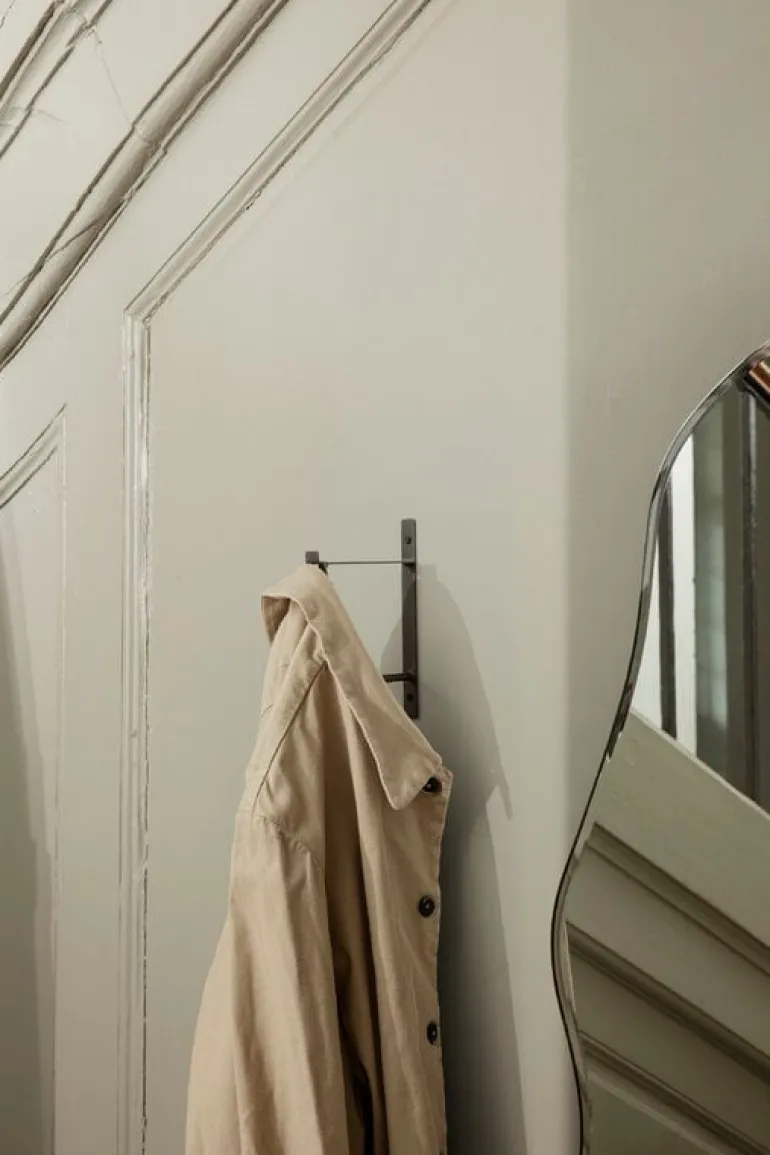Ferm Livings Hang Rack har en enkel design som överraskar med sin mångsidighet. Den platsbesparande hyllan i svart mässing har en krok och plats för upp till fyra klädhängare. Hang Rack bidrar med industriell stil och extra förvaringsutrymme i badrummet, hallen eller omklädningsrummet.