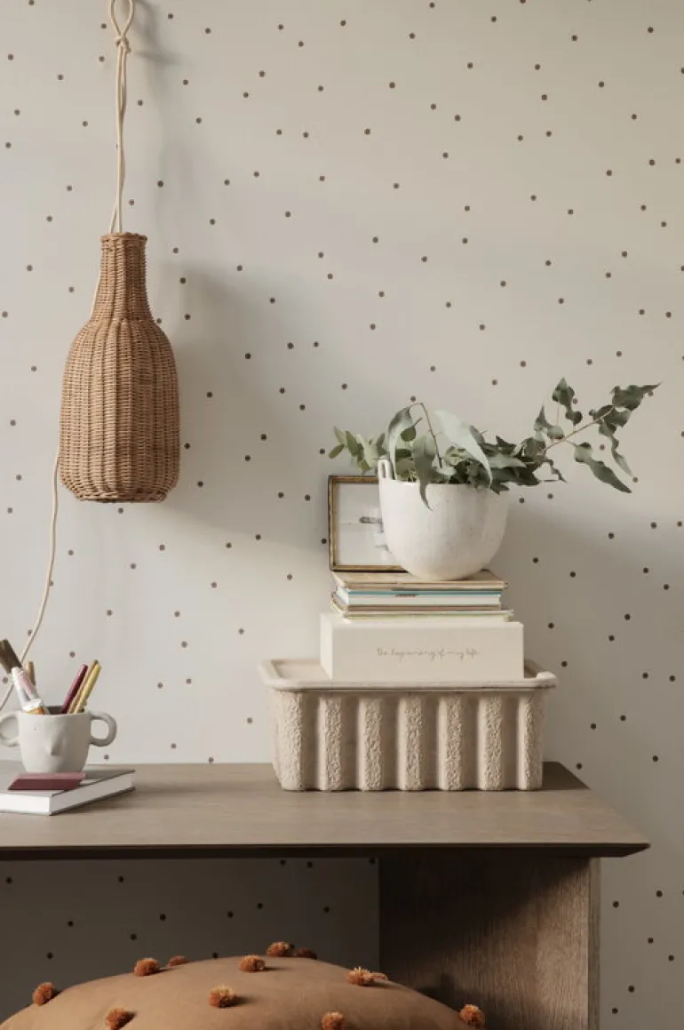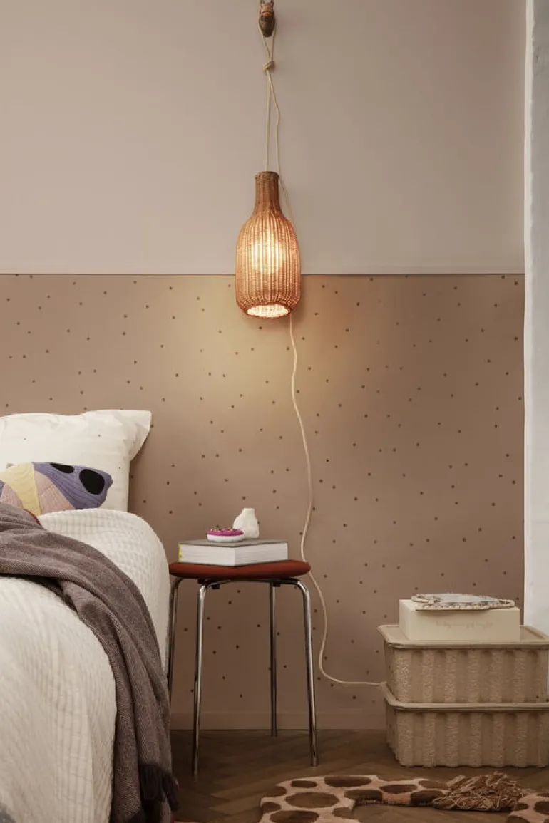 Ferm Livings Braided Bottle-lampskärm ger ditt hem en stämningsfull, organisk känsla. Den unika, handgjorda rottingskärmen filtrerar ljuset till ett mjukt sken och de små hålen släpper igenom nästan magiska ljusglimtar. Den öppna botten låter ljuset flöda mer riktat, vilket gör lampan perfekt för middagsbordet eller läshörnan. Observera att sladdsetet säljs separat.