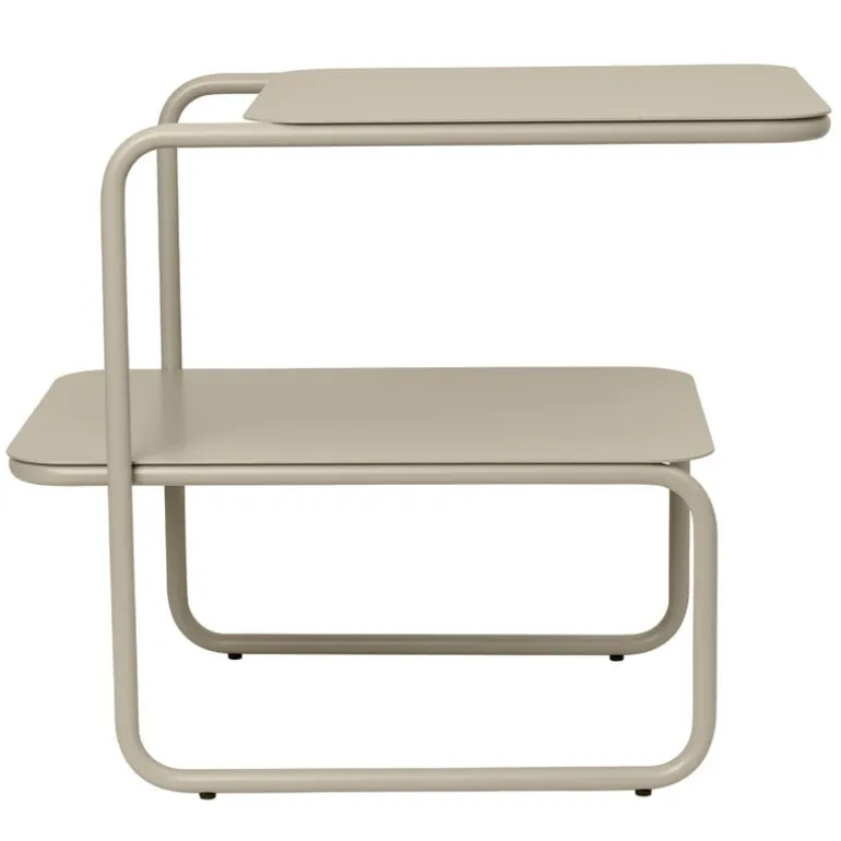 Ferm Livings bord Level charmar med den asymmetriska, moderna designen. Bordet är tillverkat av pulverlackerat stål och passar både inomhus och utomhus. Den minimalistiska ramen bildas av en geometrisk, kontinuerlig linje. Tack vare de två skivorna är bordet perfekt för förvaring, men också bredvid soffan eller balkongstolarna.
