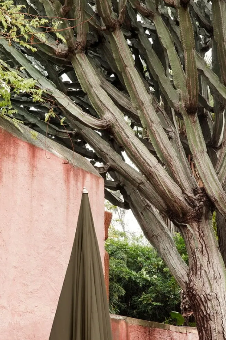Bokträdstammen ger parasollet Lull en sofistikerad finish medan aluminiumramen gör skuggan robust men tillräckligt lätt för att kunna flyttas. Det hållbara polyestertyget skyddar mot både den brännande värmen och UV-strålarna och behåller sin harmoniska nyans år efter år.