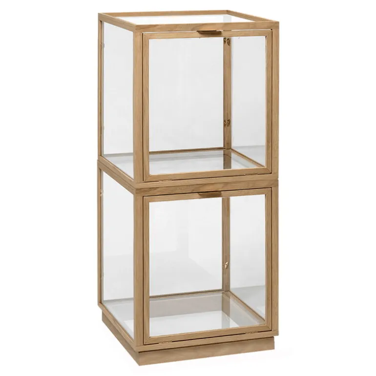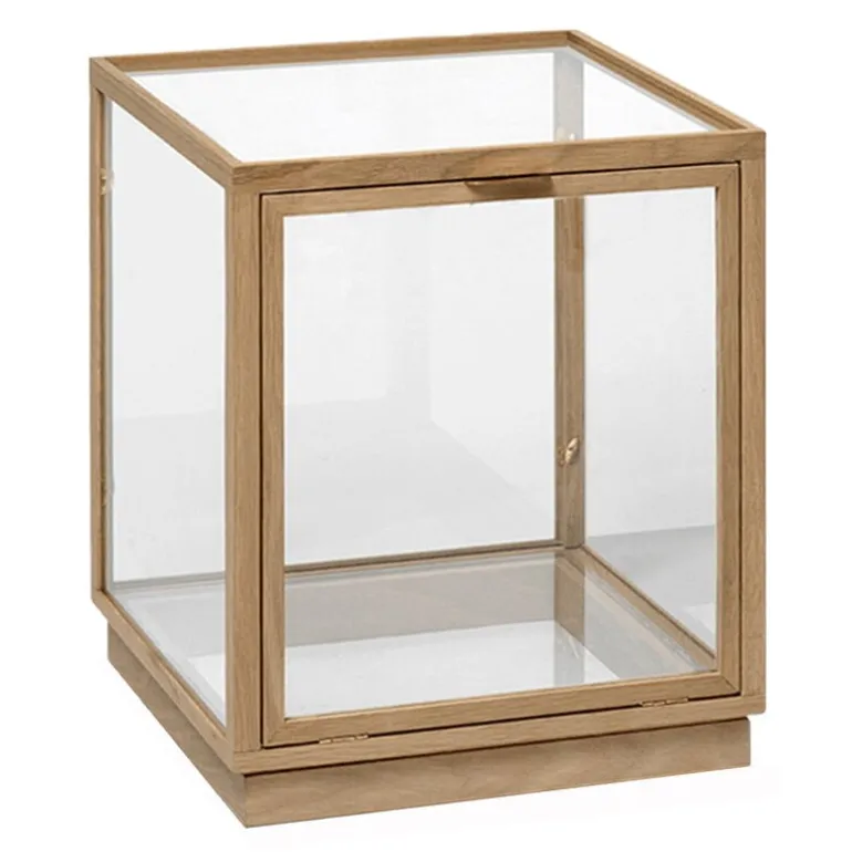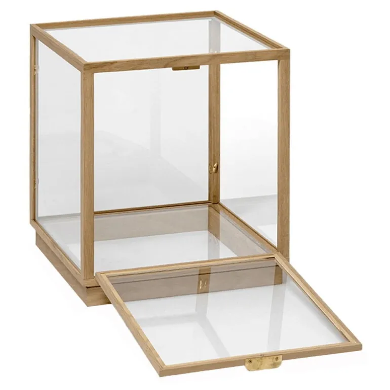 ferm LIVING:s glasmonter Miru erbjuder en stilfull förvaringsplats och utställningsyta för dina mest älskade ägodelar, från favoritböcker till souvenirer och familjeklenoder. Den stora glaslådan har en ram av ekträ med detaljer i mässing.