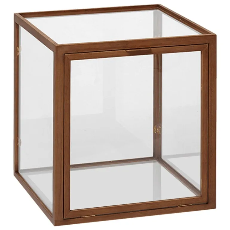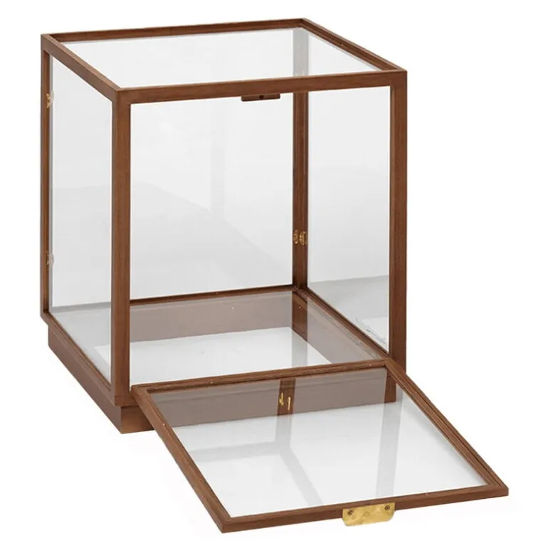 ferm LIVING:s glasmonter Miru erbjuder en stilfull förvaringsplats och utställningsyta för dina mest älskade ägodelar, från favoritböcker till souvenirer och familjeklenoder. Den stora glaslådan har en ram av ek med detaljer i mässing.