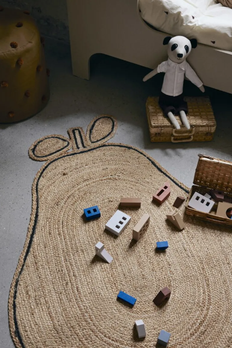 ferm LIVING:s vävda jute-matta Pear blir ett härligt tillskott i ditt hem med sin blandning av värme, naturinspirerad charm och lätt vimsighet. Den härligt päronformade mattan passar särskilt väl i barnkammaren, även om dess iögonfallande utseende kommer att få vuxna att le likväl, oavsett om den placeras i hallen eller i en lobby. Pear-mattan är handvävd från 100 % naturlig jute – materialet är inte bara hållbart, utan även miljövänligt tack vare hur snabbt det förnyas.