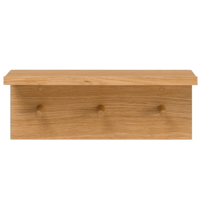 Ferm LIVING:s Place rack är en vacker och praktisk förvaringsenhet för hela hemmet. Förutom de tre krokarna i oljad ek har den väggmonterade klädhängaren en stilren hylla, som har plats för dina favoritmuggar samt barnens lerkonst. Den ansträngningslöst eleganta Place rack löser flera förvaringsproblem på en gång i hallen, köket, barnrummet och sovrummet, och tillför en mjuk, jordnära känsla till inredningen.