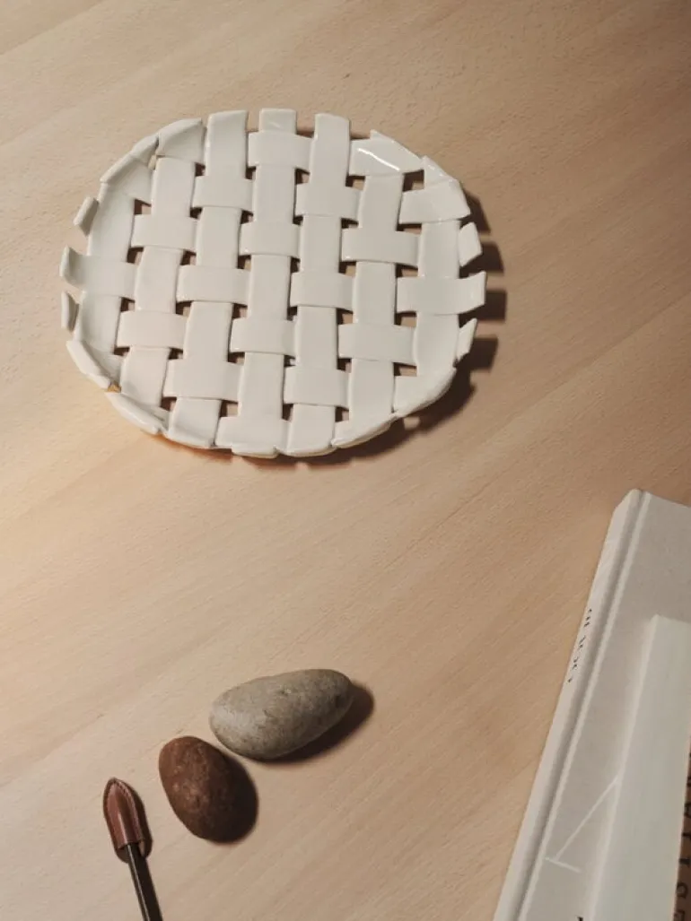 Plait-brickan från ferm LIVING fångar blicken med sin överraskande kombination av material och textur. Kollektionens skålar och brickor har inspirerats av traditionella korgflätningstekniker och är noga handgjorda av glaserad keramik. Produktionsmetoden garanterar att varje exemplar är ett unikt konstverk, perfekt för att förvara färsk frukt, bröd och bakverk, eller bara som en vacker dekoration i sig själv.
