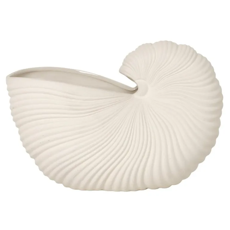 Shell från Ferm Living har en organisk form och liknar en snäcka, en kruka som påminner dig om havet. Keramikkrukan har en matt yta på utsidan och är ett iögonfallande designföremål i sig själv. Den är också vacker tillsammans med en krukväxt eller dina favoritblommor. Placera Shell på fönsterbrädan eller i bokhyllan.Du kan också ge bort krukan till någon som är fascinerad av livet under ytan.