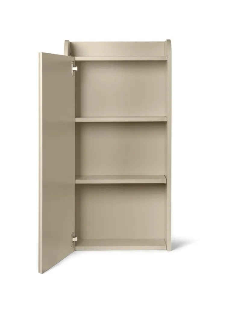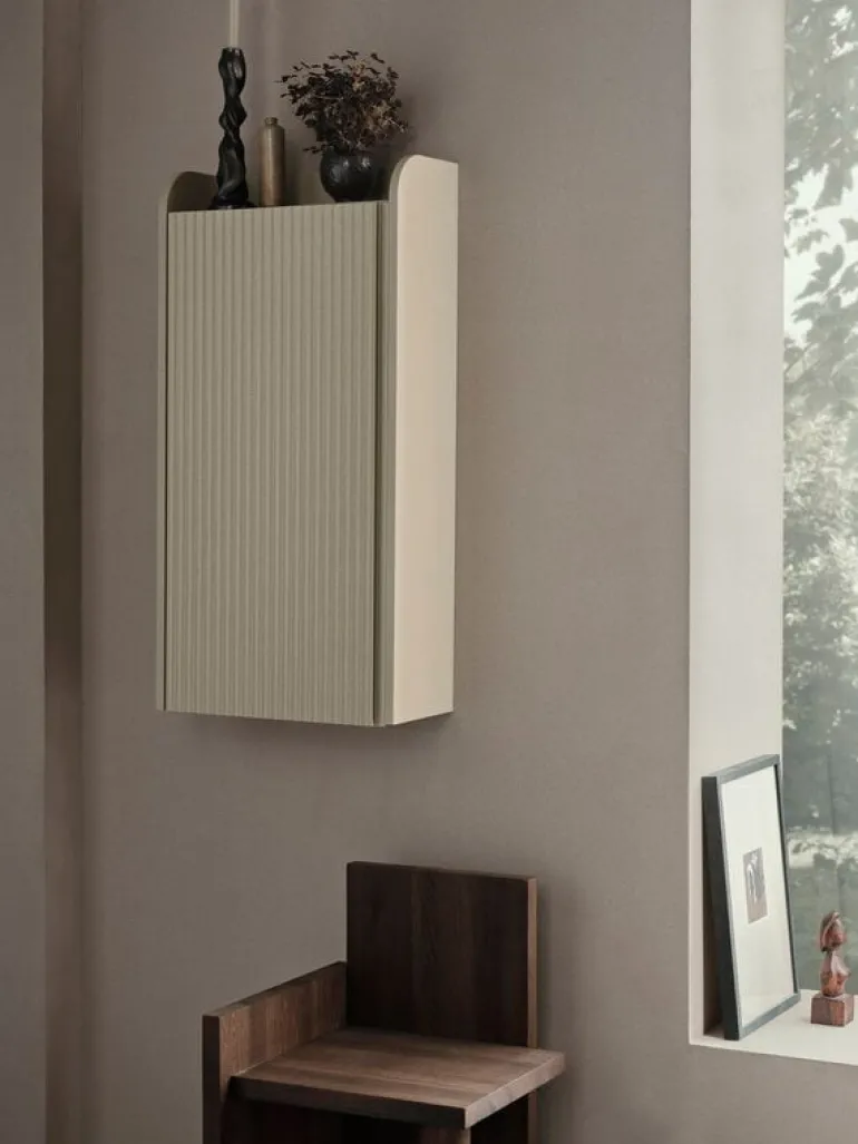 Väggskåpet Sill från ferm LIVING är en attraktiv, multifunktionell förvaringslösning för olika utrymmen. Använd skåpet som garderob i hallen eller i sovrummet, som skåp i köket eller för att förvara leksaker i barnens rum. Skåpet har små kanter på tre sidor och toppen av skåpet kan användas för att ställa dina favoritsaker, växter eller lampor. Namnet Sill kommer från det franska ordet ”sillon” och syftar på de snidade skårorna som pryder skåpets dörrar.