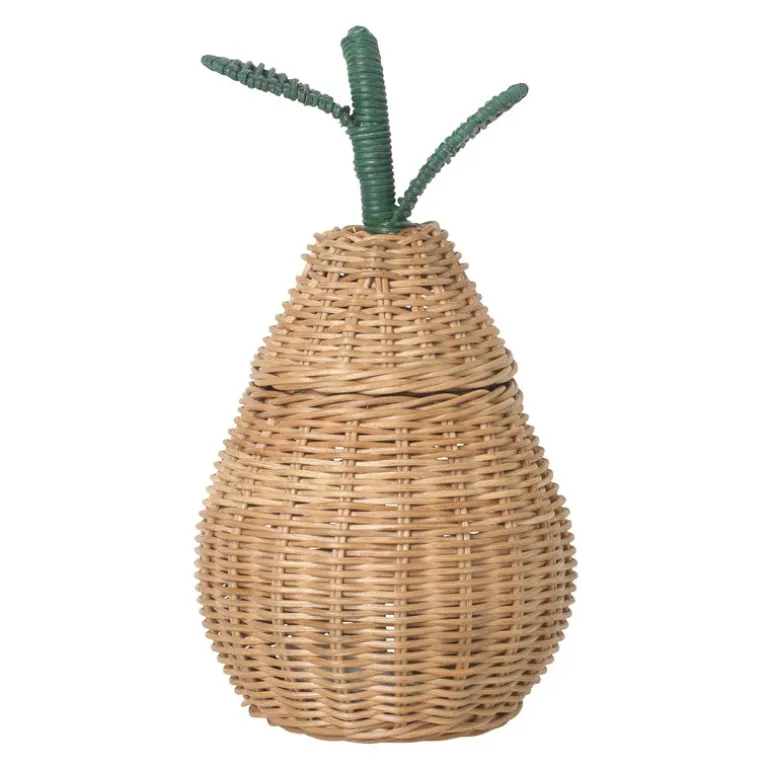 Den flätade Small Pear-korgen från Ferm Living är ett roligt sätt att hålla barnrummet städat. Den päronformade korgen är tillverkad i flätat rotting. Korgen passar perfekt till förvaring av leksaker och andra mindre föremål. Korgen Small Pears lätta naturliga rotting ger barnrummet en organisk känsla.