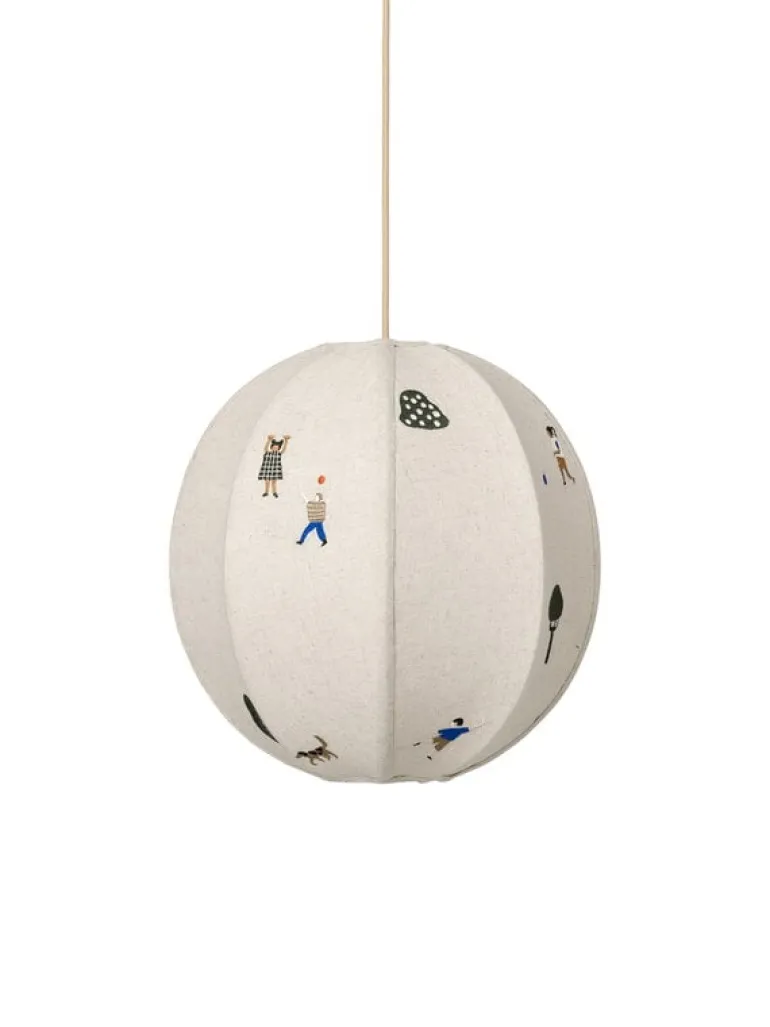 ferm LIVING:s broderade lampskärm The Park visar upp en modern version av en traditionell rislampa. Lampskärmen har ett lekfullt, minimalistiskt parkmotiv som kommer att glädja barnrummet särskilt mycket. Bomullsskärmen kommer att glädja både yngre och äldre invånare hemma och den matchar med ferm LIVING:s tygsladdset.