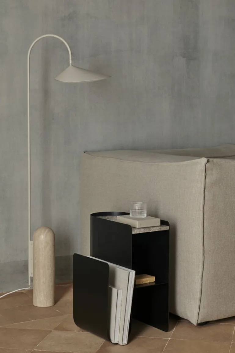 Ferm LIVINGs sidobord Vault kombinerar eleganta kurvor med praktisk design, vilket gör det perfekt för att visa upp och förvara speciella dekorationer. Det mångsidiga bordet fungerar vackert som nattduksbord, i entrén eller som ett sofistikerat sidobord i vardagsrummet. Bordet är tillverkat av pulverlackerat stål och har en unik bordsskiva i marmor, vilket gör att varje sidobord ser olika ut.