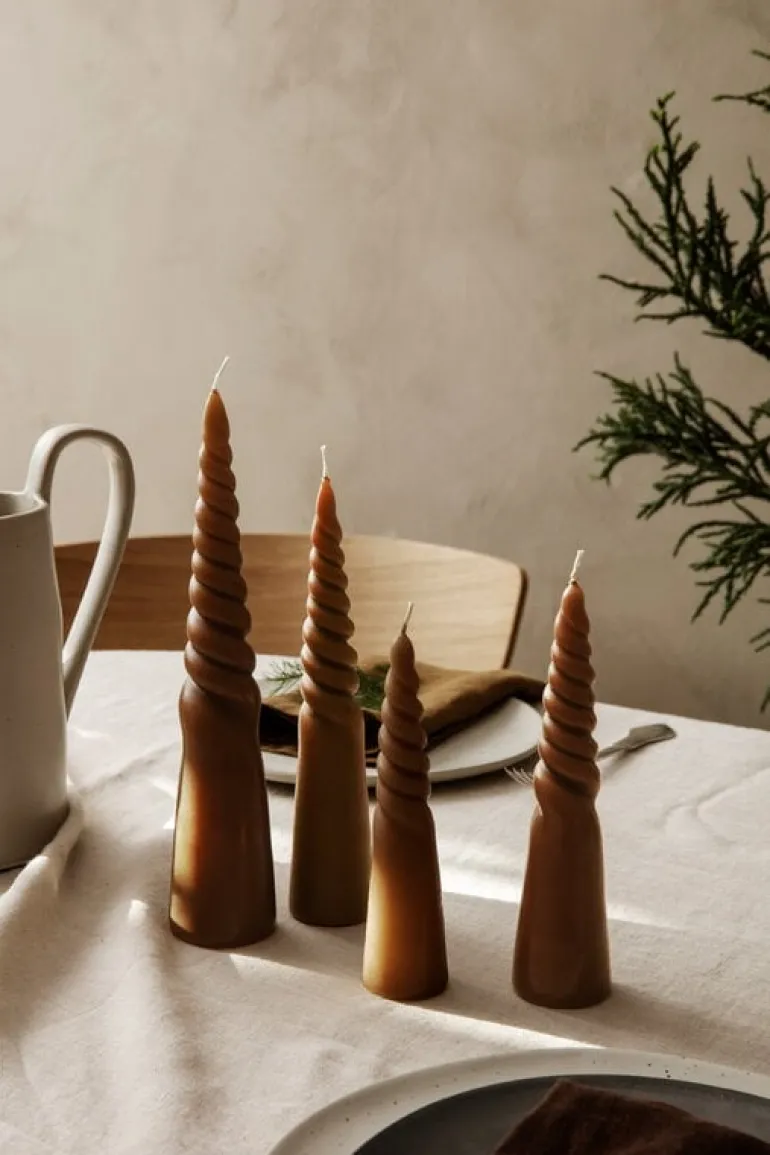 ferm LIVING:s vridna ljus ger en handvriden och konformad tillägg till din inredning. Med fyra olika storlekar på ljusen kan du skapa en intressant, skogsliknande display eller använda dem som adventsljus medan du väntar på julen. Lekfulla paraffinljus skapar också stämning på kvällarna individuellt året runt.