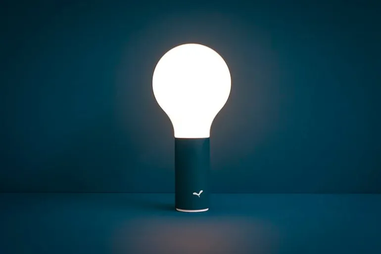 Fermobs Aplô är en riktig allround-belysning, med en lekfull design som glädjer både inomhus och utomhus. Ljuskällan, designad av Tristan Lohner, är trådlös och USB-uppladdningsbar, så det är enkelt att flytta den dit du behöver den, från vardagsrummet till balkongen eller från terrassen till gästhuset. Formen på Aplô-lampan är lånad från en vanlig glödlampa, vilket inte bara är ett grundläggande element i belysning, utan också symboliserar idéer, uppfinningsrikedom och uppfinningar – vilken passande form för en sådan innovativ lampa!