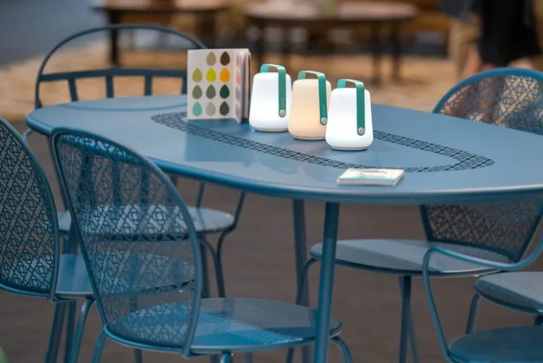 Den minsta medlemmen i Fermobs Balad-familj är liten nog att passa på trädgårdsbordet, fönsterbrädet eller en trädgren. Lampan har tre olika färgtemperaturer: neutral vit, kall vit samt varm vit som påminner om stearinljusets sken. Lampan är 12 cm hög och kommer i ett set med tre lampor.