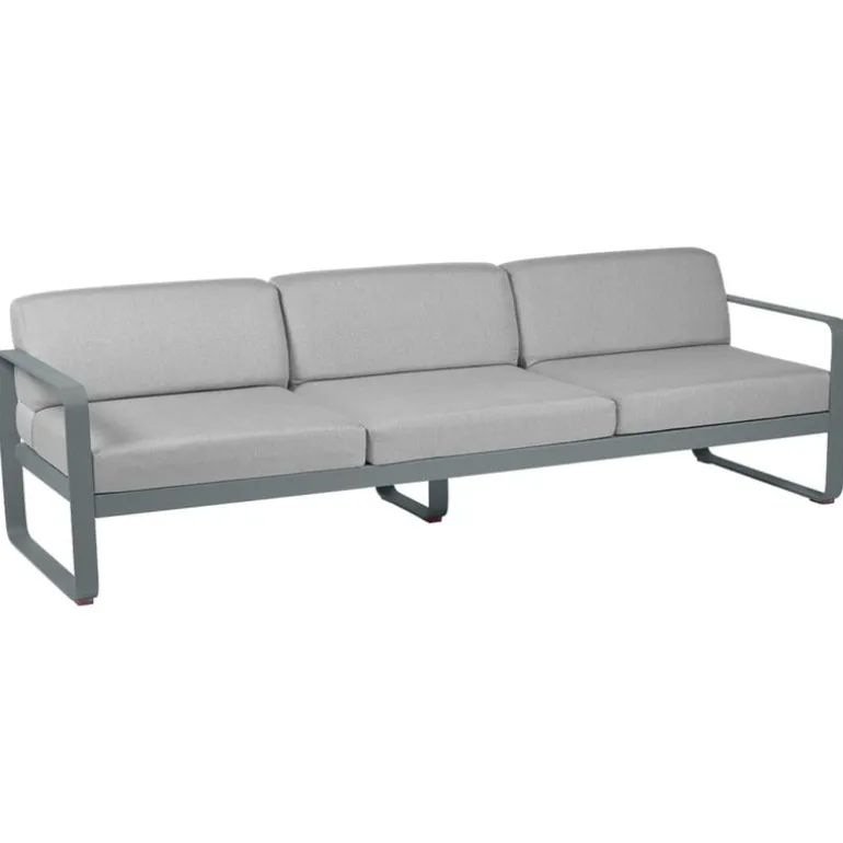 Fermobs soffa Bellevie är en bekväm plats att sitta och koppla av på utomhus, vilket passar dig perfekt som gillar att läsa en god bok med en kopp kaffe på uteplatsen eller i trädgården. Utomhussoffans look domineras av en geometrisk, men ändå mjukt rundad form, vilket gör det enkelt att kombinera många inredningsstilar. Den 3-sitsiga soffan tål även nyckfullt väder eftersom ramen är av lätt, men tåligt aluminium och kuddarna har det vattenavvisande Sunbrella-tyget med UV-skydd.