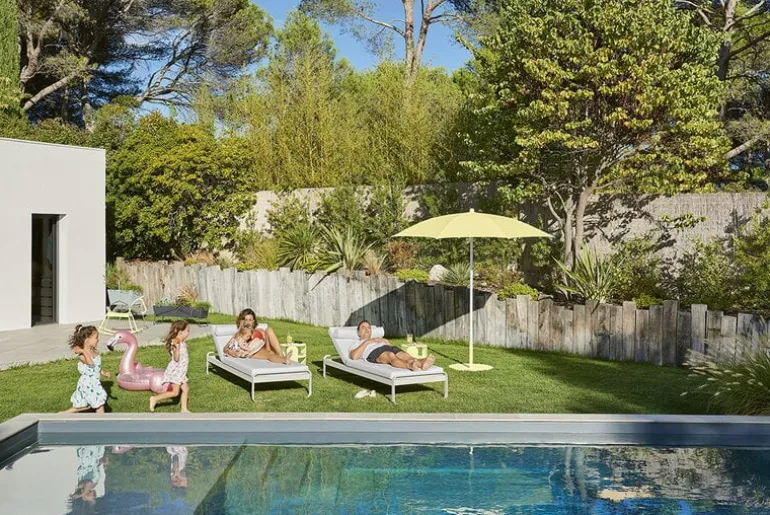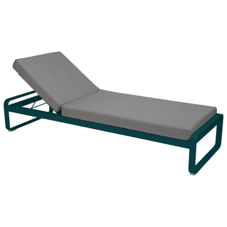 Solsängen Bellevie Premium från Fermob är så bekväm att du inte har någon lust att lämna den alls. Den lätt välvda stolen har tre olika lägen, så att du kan ställa in den för att passa det du håller på med för stunden: sänk ner ryggstödet om du vill ta dig en liten siesta i solen, eller höj det ett snäpp om du vill smutta på en alkoholfri drink eller en cocktail eller läsa en bok. Vilstolen Bellevie är väldigt motståndskraftig och klarar till och med ostadigt väder: ramen är gjord av lätt men tåligt aluminium, och madrassen är tillverkad i väldigt bekvämt och följsamt polyuretanskum som klätts med smutsavvisande, UV-beständigt Sunbrella-tyg. Även om tyget i viss mån står emot vatten och fukt ska madrassen förvaras inomhus om det regnar mycket eller vid andra liknande väderförhållanden.