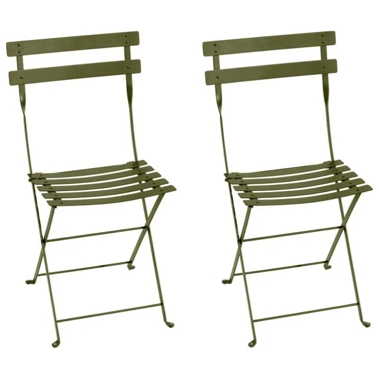 Fermobs fällbara metallstolar Bistro är inte bara charmiga och bekväma, utan även väderbeständiga. Pulverlacken med UV-skydd garanterar klara färger i många år framåt. Bistro-kollektionen är tillverkad i Fermobs fabrik i Frankrike, av material i högsta kvalitet. Detta set innehåller två altanstolar.