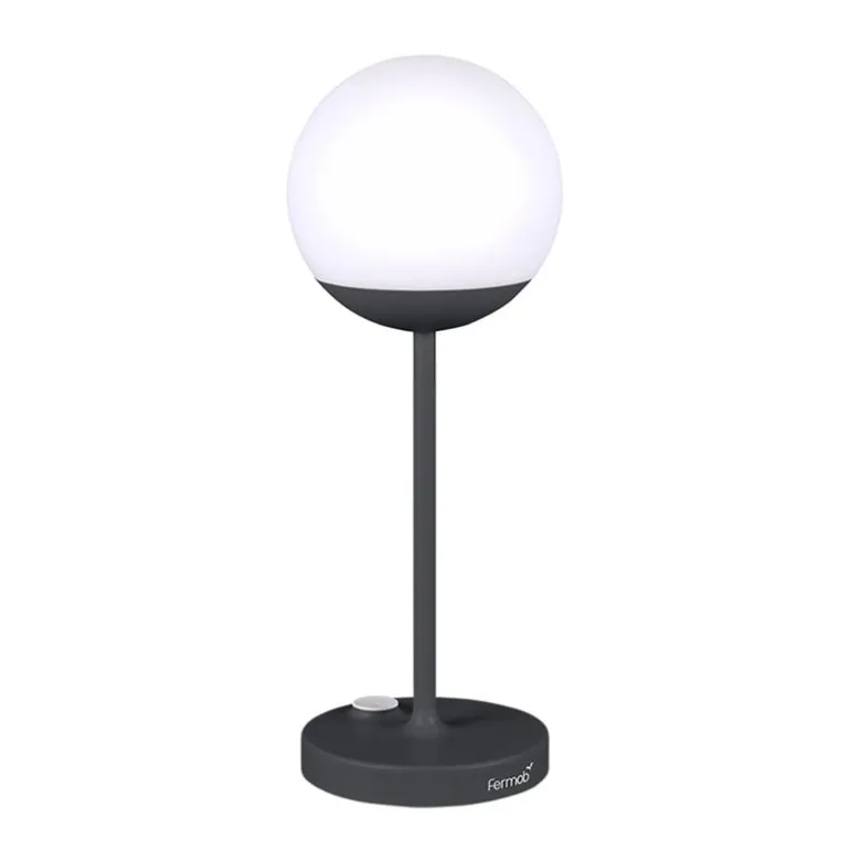 Fermobs lampa Mooon! sprider ett magiskt månsken i hemmet, trädgården, balkongen, stugan eller var du än väljer att ha den. Mooon! formgavs av Tristan Lohner och är en bärbar, sladdlös och laddningsbar bordslampa med en chic design inspirerad av fransk gatubelysning från 1800-talet. Mooon! har en dimbar LED-enhet som drivs av ett USB-laddningsbart batteri och ger ljus i 7–12 timmar beroende på ljusstyrka. Du kan välja mellan två olika ljustemperaturinställningar – kallt vitt (6000K) eller varmt vitt (4000K).